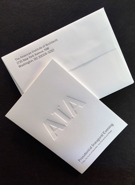 A metal die set is created from digital artwork and mounted onto the press. Pressure creates a "bumped up" image on the paper, giving a raised appearance. The embossing can be enhanced with foil or left plain (blind emboss).
